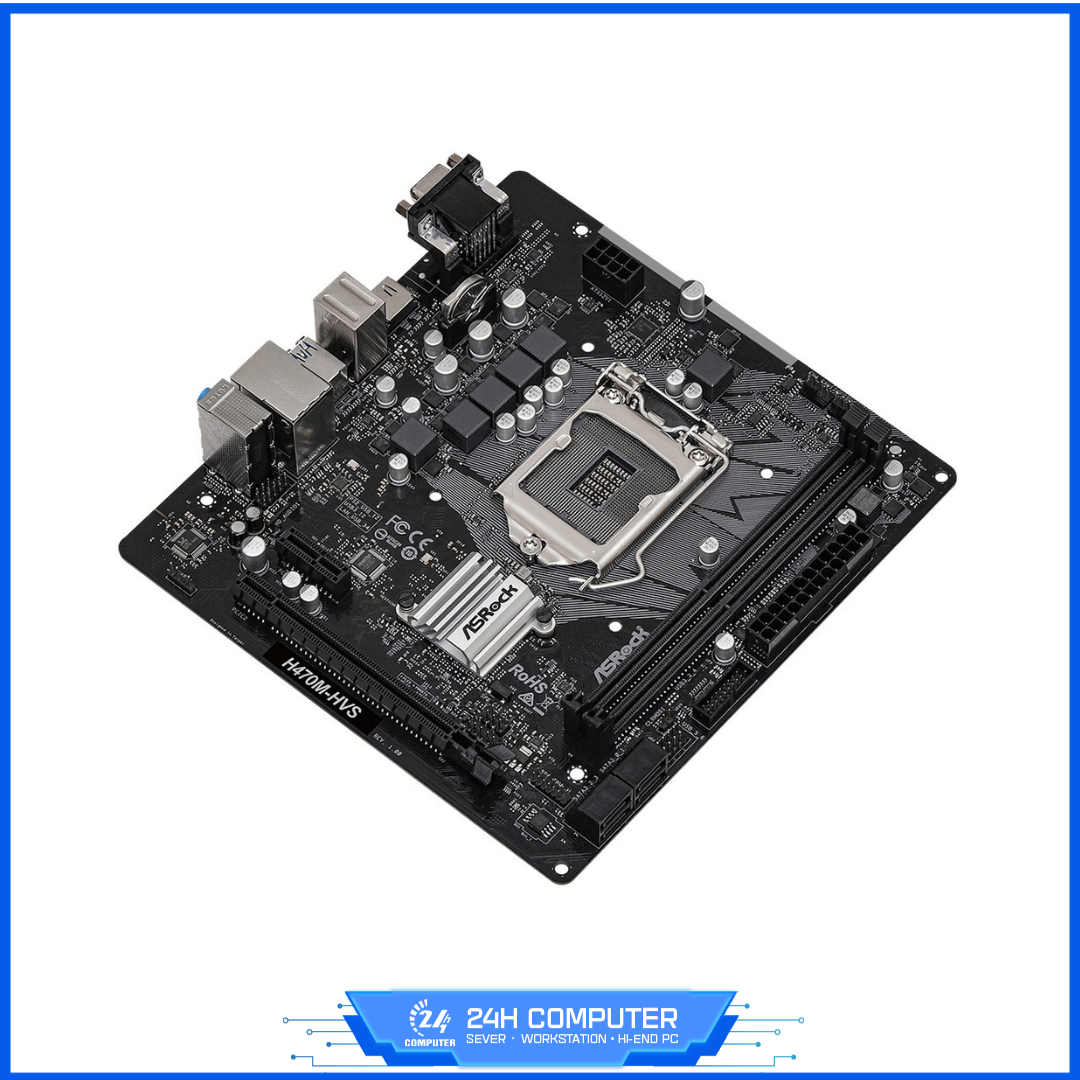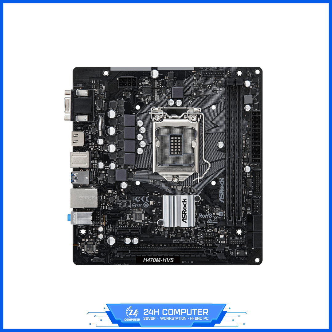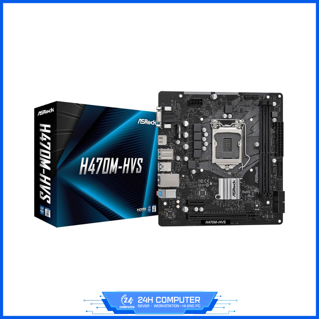 ASRock H470M-HVS là bo mạch chủ kích thước Micro-ATX (244 × 244 mm) dựa trên chipset Intel H470, được thiết kế cho bộ xử lý Intel Core thế hệ 10 (Comet Lake) sử dụng socket LGA1200. Sản phẩm đáp ứng nhu cầu đa dạng từ máy tính văn phòng, HTPC, streaming, đến gaming tầm trung và workstation nhỏ gọn cần ưu tiên hiệu năng và độ ổn định cao. Với khả năng mở rộng lưu trữ NVMe và truyền dữ liệu nhanh, H470M-HVS mang đến nền tảng vững chắc cho mọi cấu hình.