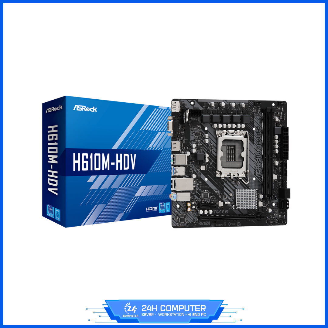 Bo mạch chủ ASRock H610M-HDV DDR4 – mATX, Socket LGA1700, 2 khe DDR4-3200, Ultra M.2 NVMe & Gigabit LAN