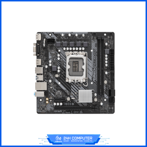 ASRock H610M-HDV DDR4 (244 × 226 mm) dùng chipset Intel H610, hỗ trợ socket LGA1700 cho CPU Intel® Core™ thế hệ 12/13/14, 2 khe DDR4-3200 (max 64 GB), khe Ultra M.2 NVMe PCIe Gen3×4, 4 SATA III, USB 3.2 Gen1 Type-A, Realtek® Gigabit LAN, linh kiện Super Alloy và Full Spike Protection, đảm bảo độ bền và hoạt động ổn định.