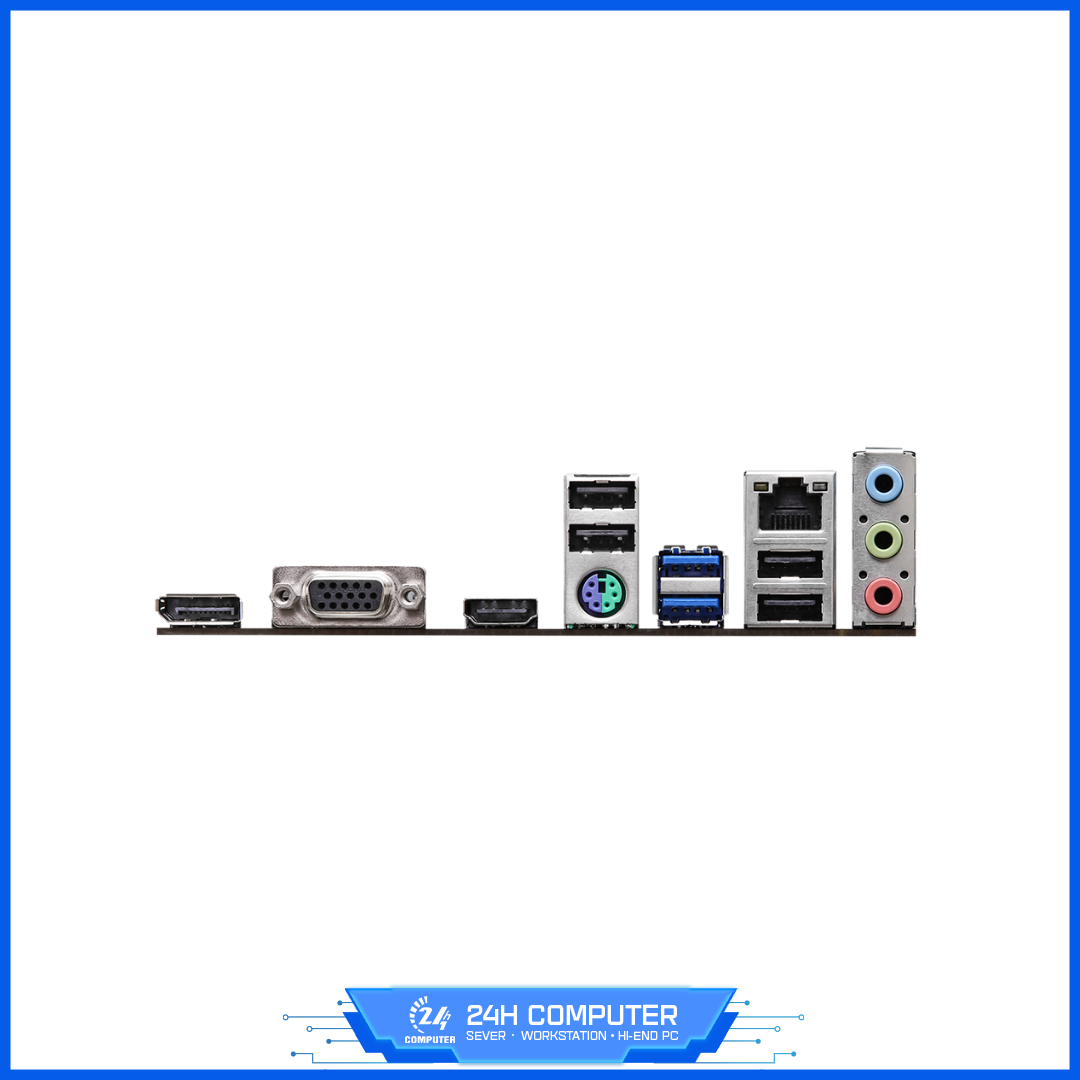 1 khe PCIe 4.0 x16 (gia cố thép) cho card đồ họa, 1 khe PCIe 3.0 x1 cho card mở rộng. Mặt sau bo mạch cung cấp 2 cổng USB 3.2 Gen1 Type-A và 4 cổng USB 2.0; trên PCB có header USB 3.2 Gen1 và USB 2.0 để kết nối cổng trước case. Đầu ra đồ họa tích hợp gồm HDMI 1.4b (4K@30 Hz) và D-Sub VGA.