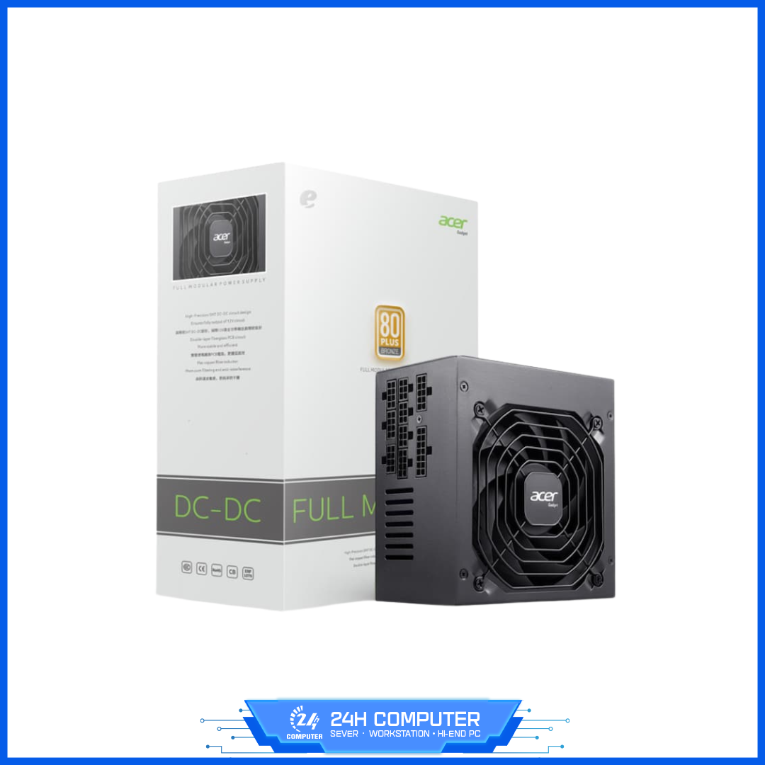 Nguồn Acer AC750 750 W (80 Plus Bronze, Active PFC) với flat-cables gọn gàng, hiệu suất > 85% và bảo vệ OVP/UVP/OCP/SCP, cung cấp điện ổn định cho toàn bộ hệ thống.