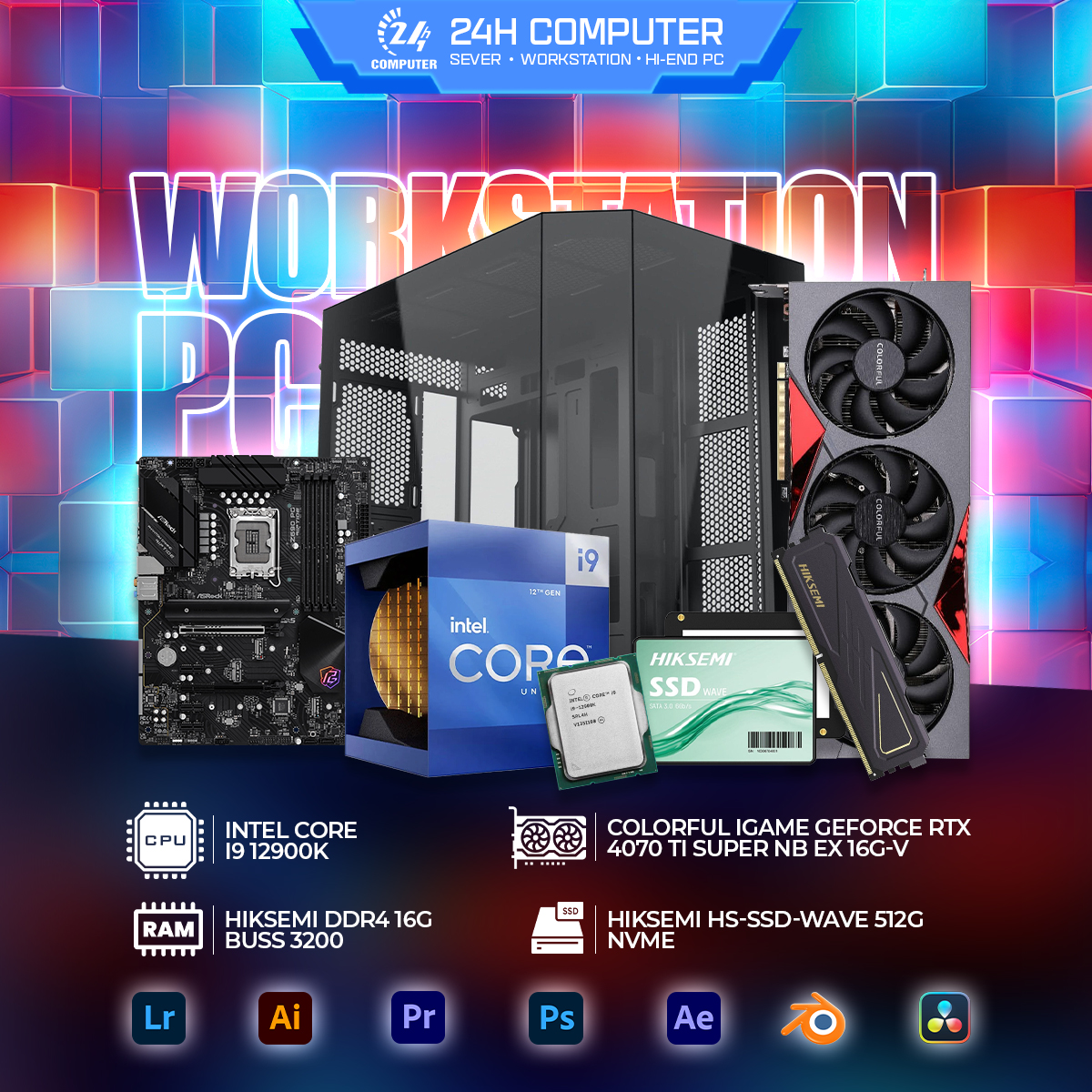 PC Workstation 3D Render & Edit Video i9-12900K – RTX 4070 Ti SUPER 16 GB OC, RAM 16 GB DDR4 & SSD NVMe 512 GB